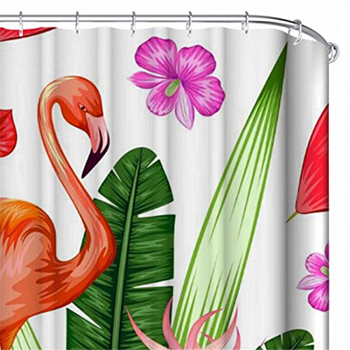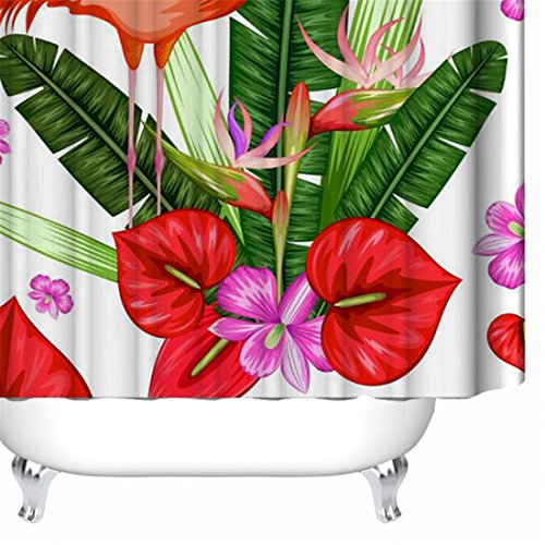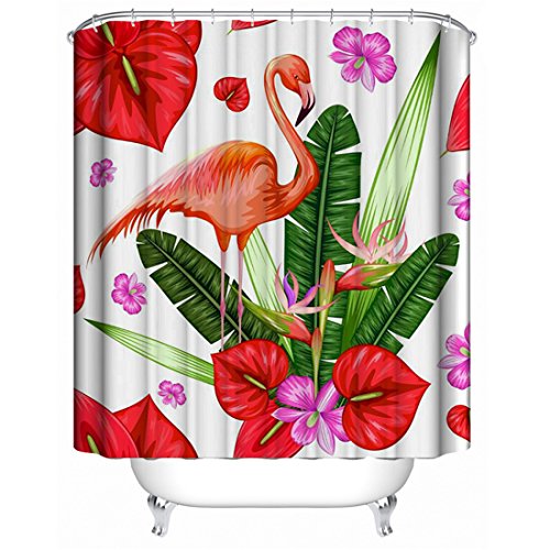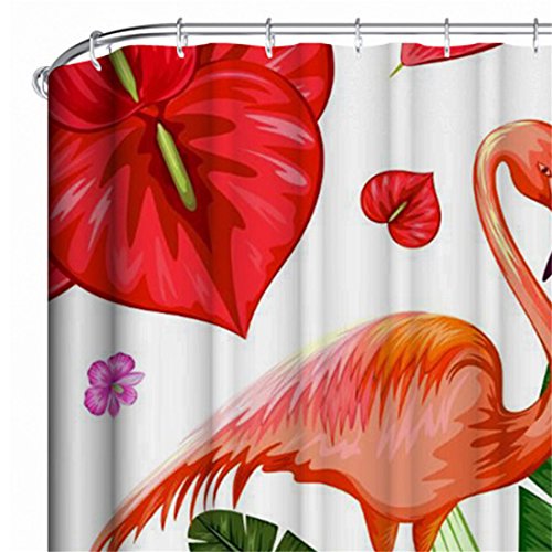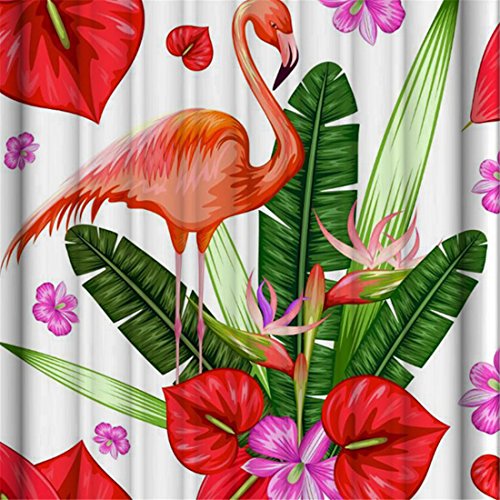 Thick Polyester Fabric Shower Curtain Set, Natural Tropical Scenery Pink Flamingo Flowers Print, Mildew Resistant Waterproof Machine Washable , 72 X 72 inch, Red