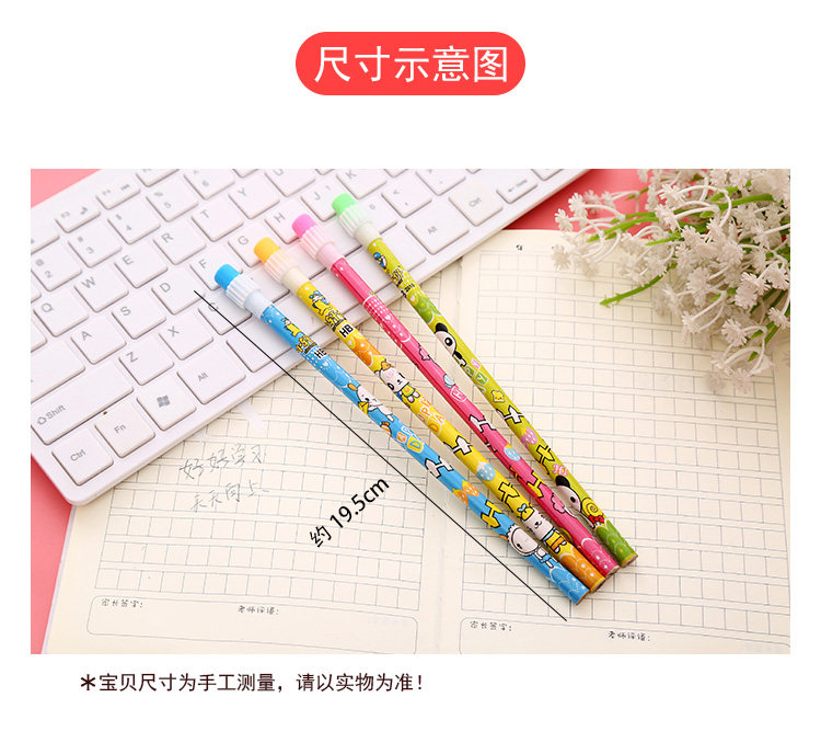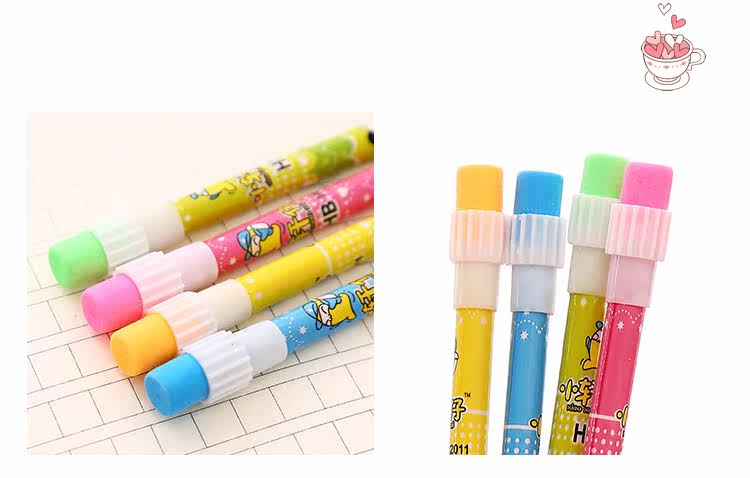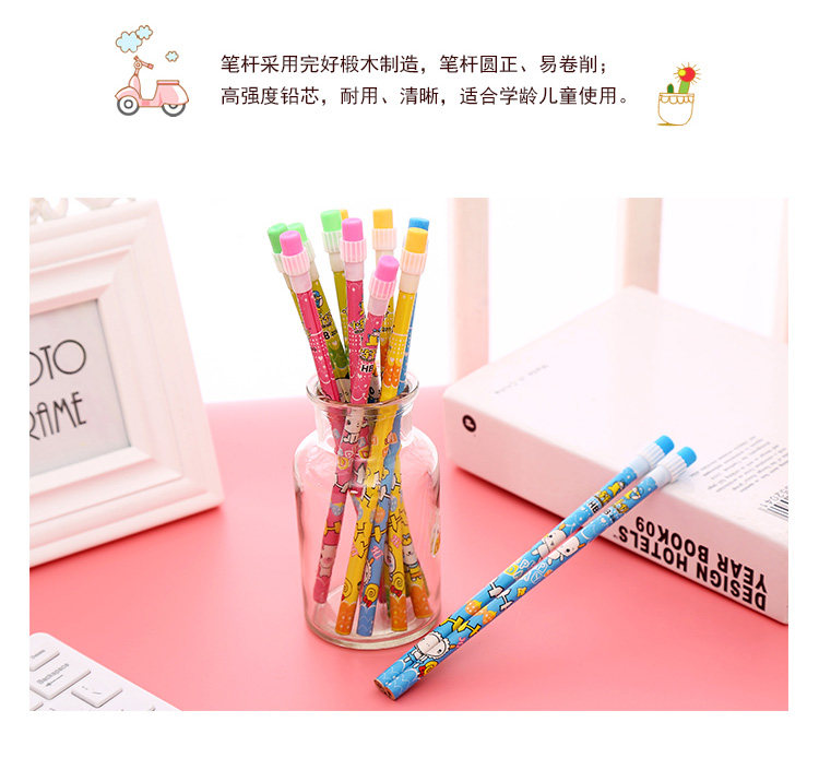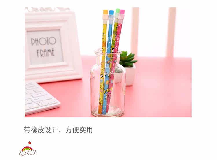圆头带橡皮铅笔绘图素描笔创意可爱卡通铅笔hb小学生学习用品文具