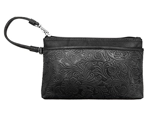 ili Leather 6577 Embossed Wristlet Handbag with RFID Lining