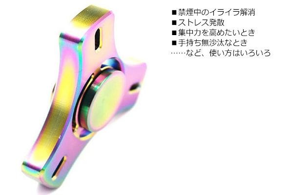 | 回転、重量感、輝きすべてがプレミアムな、ステンレス鋼製ハンドスピナー!!美しく輝くレインボータイプです。手に持って指先でグルグルと回すシンプルなアイテムです。 |