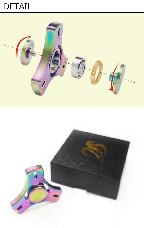回転、重量感、輝きすべてがプレミアムな、ステンレス鋼製ハンドスピナー!!美しく輝くレインボータイプです。手に持って指先でグルグルと回すシンプルなアイテムです。 |
