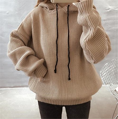 -. Title : JIANGWEIレディース 秋冬 長袖 ロング丈 セーター ニットセーター フード付き 編みニット カジュアル ゆる 無地 BF風 防寒  あったか