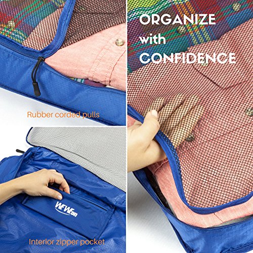 -. Brand : WEWEON -. Department : unisex-adult (lage only) -. Feature : SMART PACKING CUBES: Your go to packing accessory for your next trip! Compartmentalize your essentials quickly and effortlessly. Keeping your belongings in order and finding things fast has never been easier. / MATERIAL: Ripstop technology and water resistant nylon. Easily view what you've already packed through the mesh front cover. / DETAILING: Finished interior seams for durability. Double rubber corded pulls make opening / closing simple and fast. Includes interior zipper pocket to protect your smaller accessories. Comes with a convenient exterior carrying handle. / PRODUCT DIMENSIONS: 3 pc Set. Large (18" x 13" x 4") Medium (14" x 10" x 4") Small (11" x 7" x 4") / BONUS DRAWSTRING BAG: Includes a durable drawstring bag perfect for storing your shoes, laundry or tech accessories. -. ProductGroup : Apparel -. ProductTypeName : LAGE -. Size : Large -. Title : WEWEON Packing Cubes-Durable Travel Organizers Packing Cubes Set Laundry Bag
