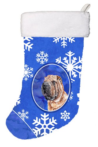 Caroline's Treasures Shar Pei Winter Snowflakes Christmas Stocking, 11 x 18", Mulitcolor
