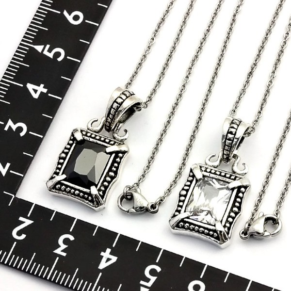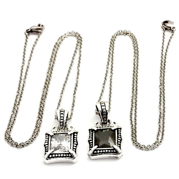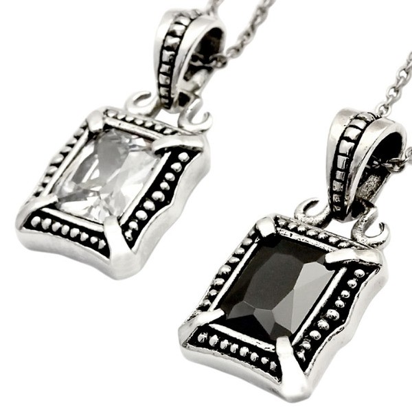 レトロ感を醸し出すRoyal Jokerユートピアペンダント。スクエアカットのホワイトとブラックCZ(キュービックジルコニア)に周りをミル打ちで囲い4つの爪でしっかり留めたシンプルなペンダントです。シンプルなデザインなので、どんなスタイルにも合わせやすい1本。ペアペンダントなので、どんな時でも身に着けていたい、そんな2人にオススメのアイテムです。本物のシルバーだから出せる質感が堪能できるアイテムです。専用のケースが無料で付属するので、プレゼント・ギフトにとってもオススメです。