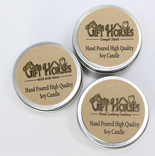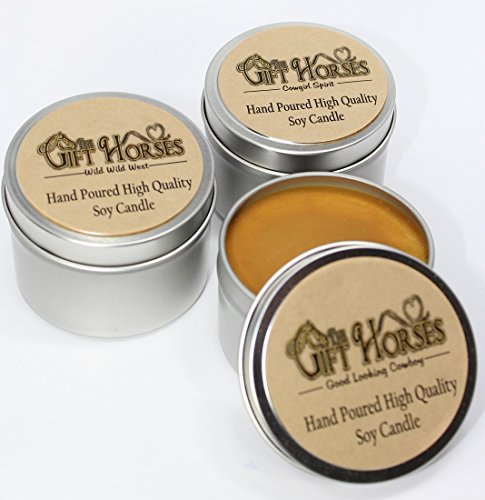 Western Theme - 3 pack - All natural Scented Soy Candles includes Good Looking Cowboy (SEXY), Cowgirl Spirit (Honeysuckle Jasmine), Wild Wild West (Leather, Cedar, Musk, Patchouli) in 6 oz. Tins