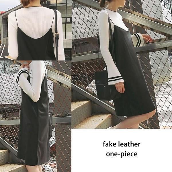 | フェイクレザー キャミソール ワンピース ミニ丈 チュニック 無地 黒 ブラック[ネコポス不可] 【キャミソール ワンピース レディース 女性 ロンデルブラック ワンピース ミニワンピース 秋冬 重ね着に 体型カバー ノースリーブ one-piece】 | |