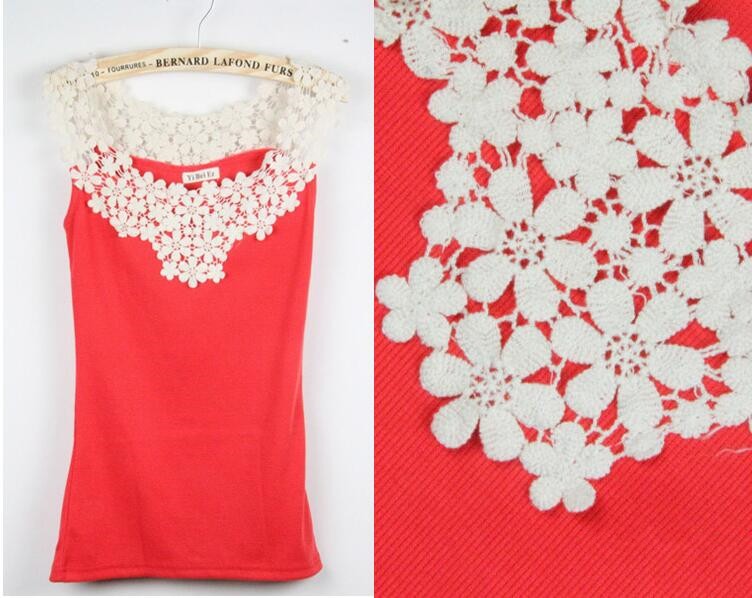 花柄モチーフレース タンクトップ襟に花を連ねたようなモチーフレースのタンクトップ。重ね着でチラ見せだけでも女性らしさをアップしてくれます。ストレッチが効いた、ふんわりとした柔らかな肌触りで薄すぎず厚すぎず程よい生地感でオールシーズン着用していただけます♪