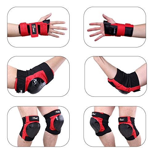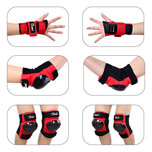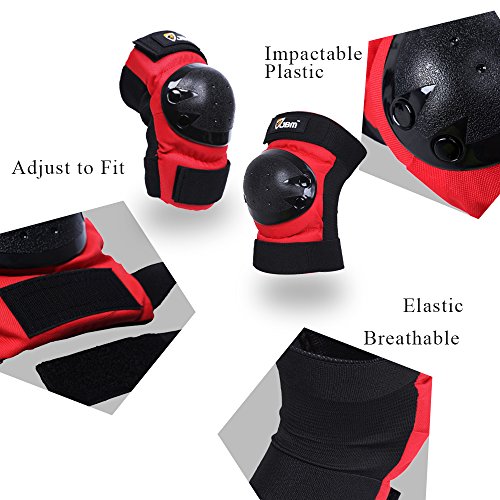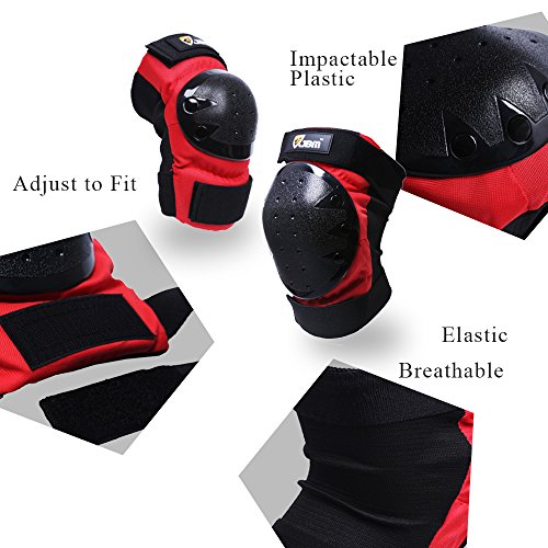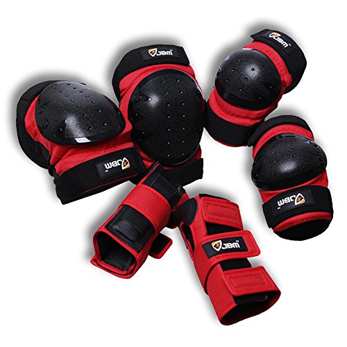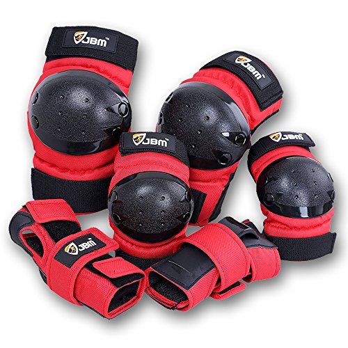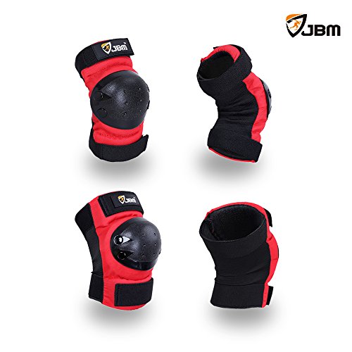 JBM international Adult / Child Knee Pads Elbow Pads Wrist Guards 3 In 1 Protective Gear Set, Red, Youth / Child