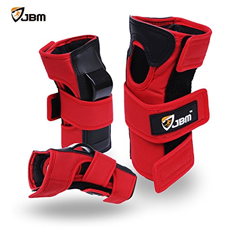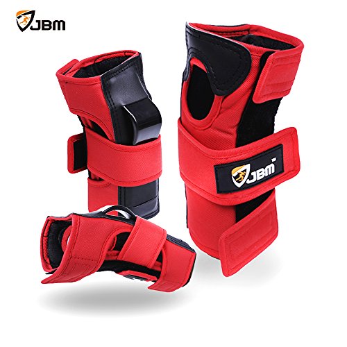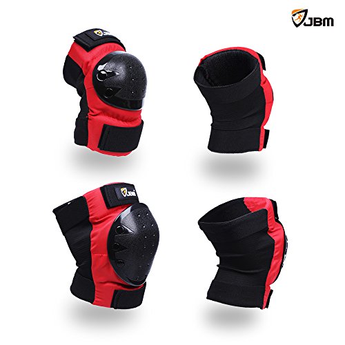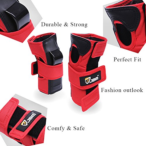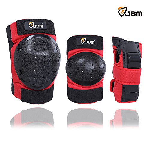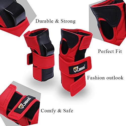 JBM international Adult / Child Knee Pads Elbow Pads Wrist Guards 3 In 1 Protective Gear Set, Red, Adult