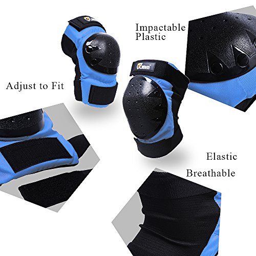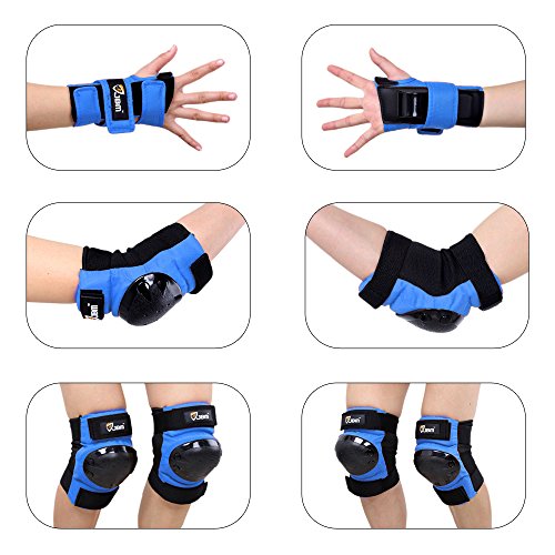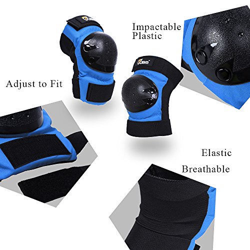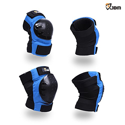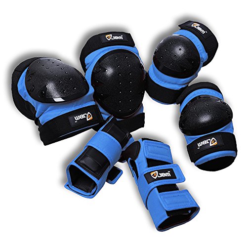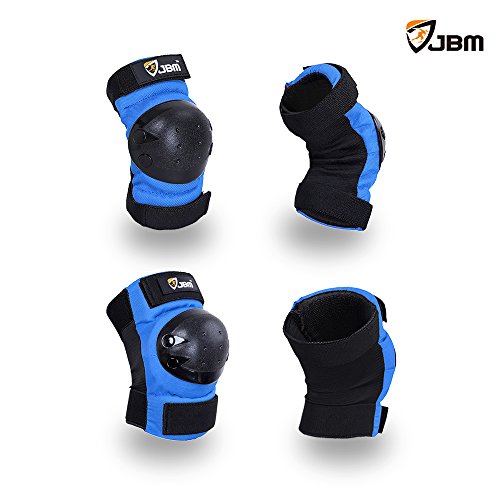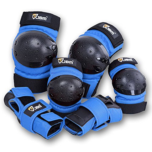 JBM international Adult / Child Knee Pads Elbow Pads Wrist Guards 3 In 1 Protective Gear Set, Blue, Youth / Child