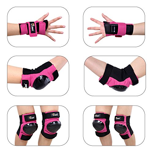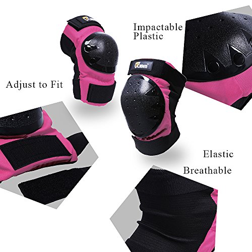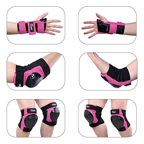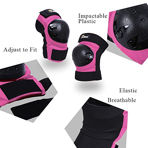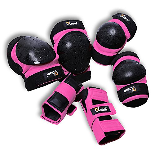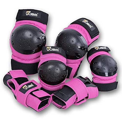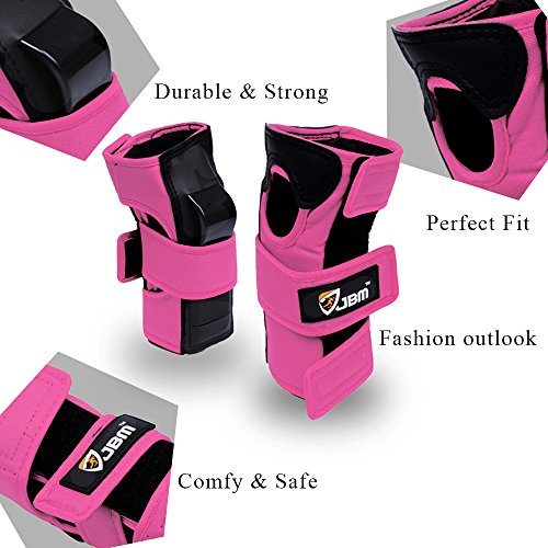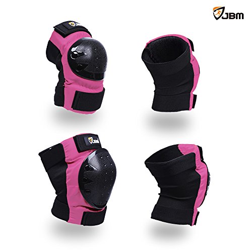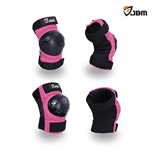 JBM international Adult / Child Knee Pads Elbow Pads Wrist Guards 3 In 1 Protective Gear Set, Pink, Adult