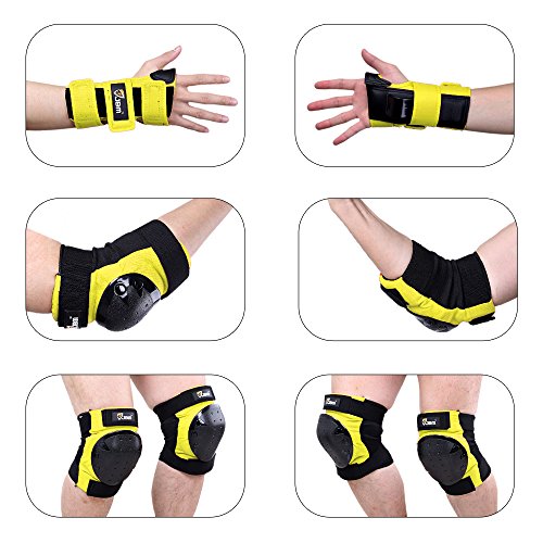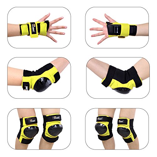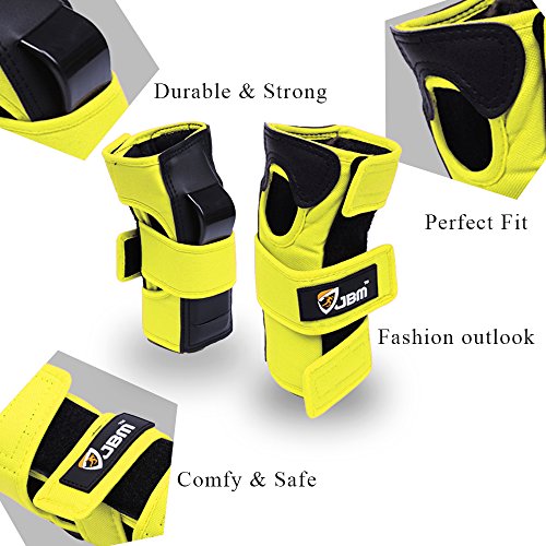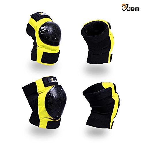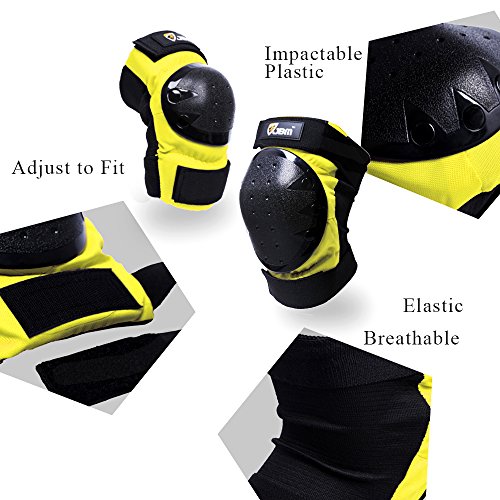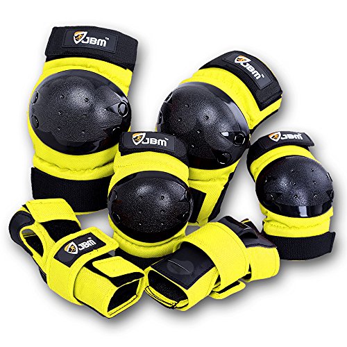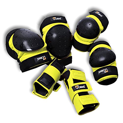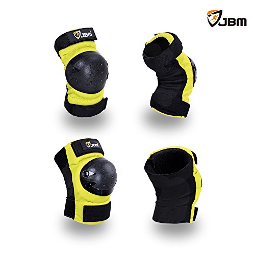 JBM international Adult / Child Knee Pads Elbow Pads Wrist Guards 3 In 1 Protective Gear Set, Yellow, Youth / Child