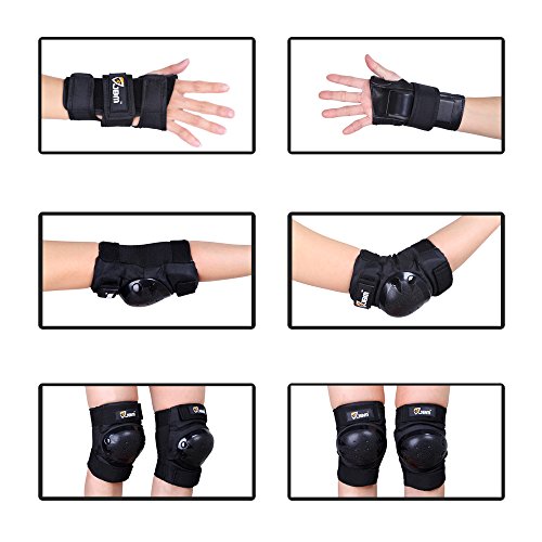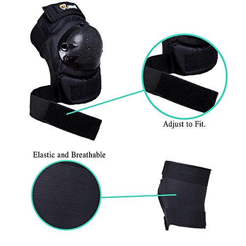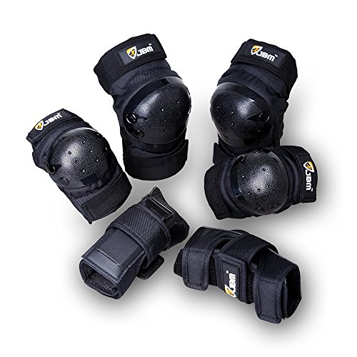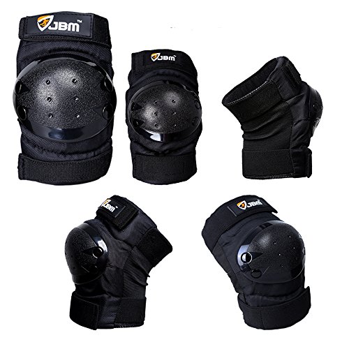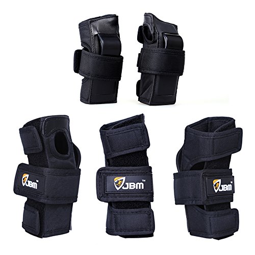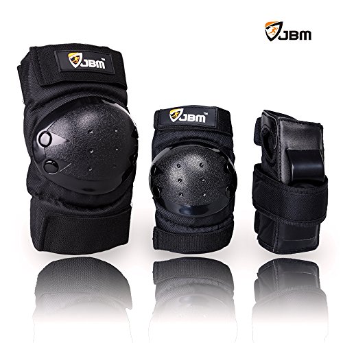 JBM international Adult / Child Knee Pads Elbow Pads Wrist Guards 3 In 1 Protective Gear Set, Black, Adult
