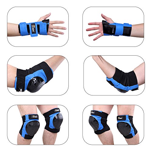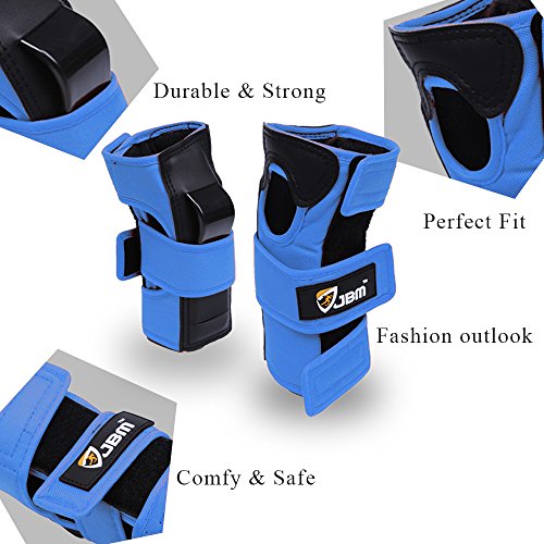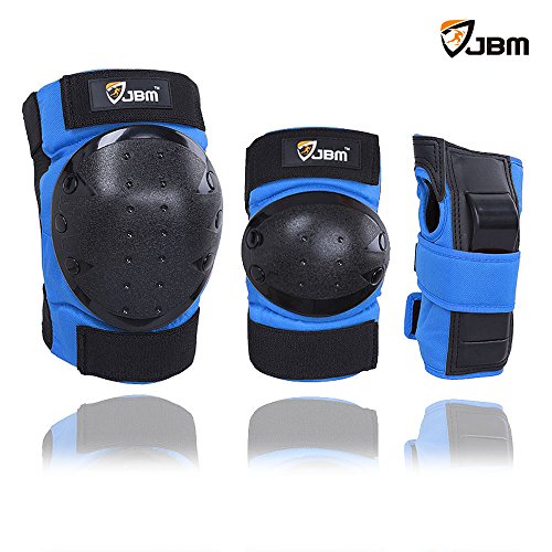 JBM international Adult / Child Knee Pads Elbow Pads Wrist Guards 3 In 1 Protective Gear Set, Blue, Adults