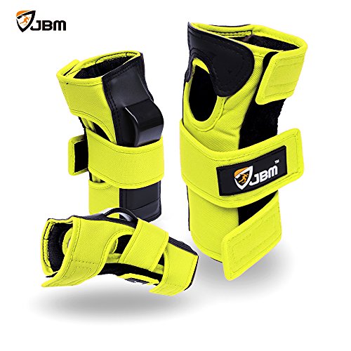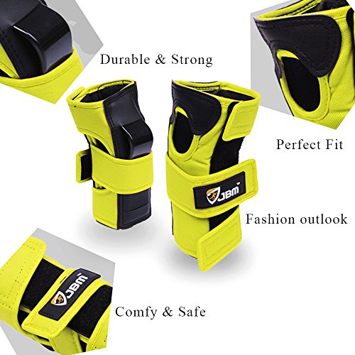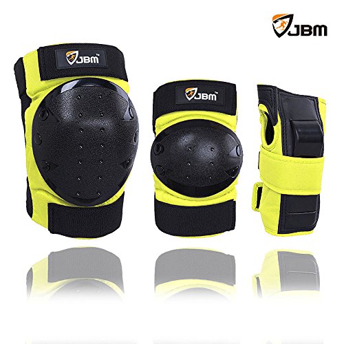 JBM international Adult / Child Knee Pads Elbow Pads Wrist Guards 3 In 1 Protective Gear Set, Yellow, Adults