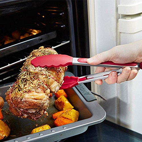 SAVORLIVING Stainless Steel Kitchen Tongs with Silicone Tips, 9 inches and 12 inches Tongs Set, Utility Tongs with Locking System, 2 Pcs Set (Red) - Size: Length 9 inches and 12 inches.Please contact us to get the 10 Delicious Simple Recipes eBook.