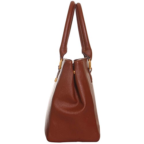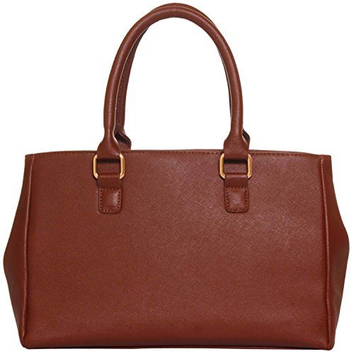 FASH Structured Designer Inspired Classic Satchel Handbag,Brown,One Size