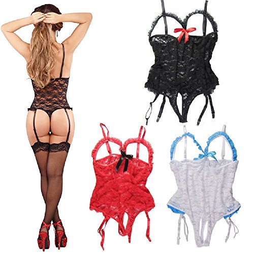 -. Feature : Material: Lace / Color:Black,Red,White / Style: Sexy Open Bra Teddy(NO STOCKING) / Size: One Size / Hand Wash