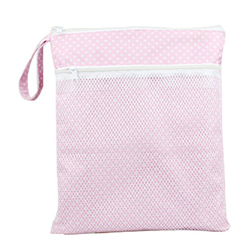 B&P Life Style Cute Travel Baby Wet and Dry Cloth Diaper Organizer Bag / Wet/Dry Diaper Bag / Baby Cloth Diaper Waterproof Zippered Wet/Dry Bags (Pink Dots)
