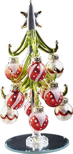 LSArts Glass Christmas Tree with Ornament Balls, Red, 6 Inch, Gift Box