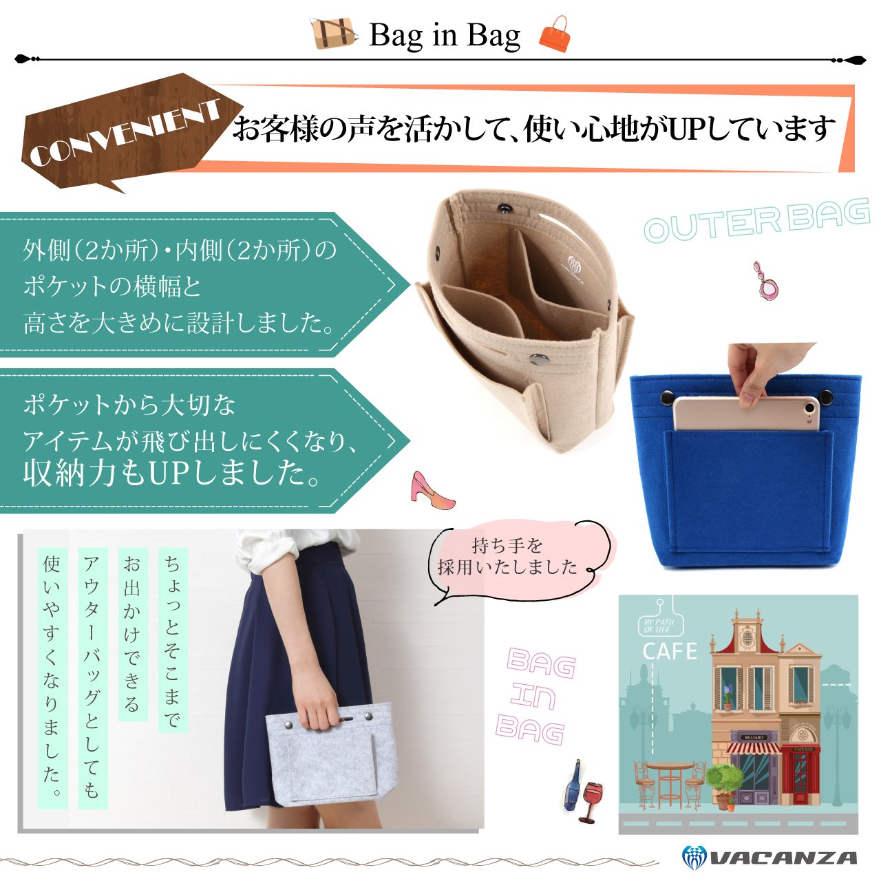 ● For a little outing such as lunch and shopping, take out the bag in bag with valuables and necessary accessories, and have reasonable size feeling