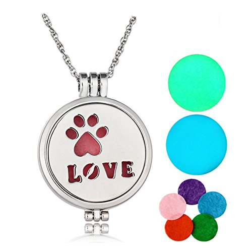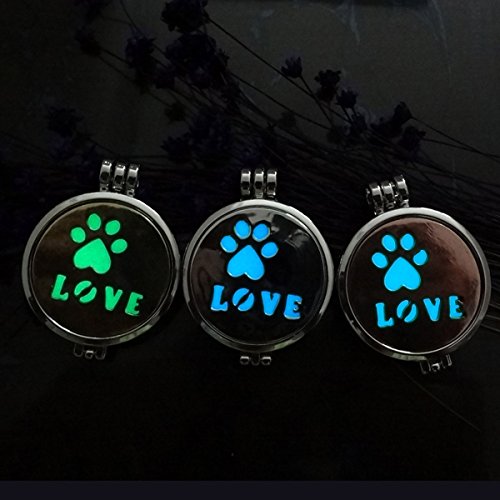 - Consists of 2 parts,you can open it from the top like a locket and is specially designed to hold our non-toxic pads and luminous disks.Just apply a few drops of your favorite essential oil to whatever your mood or need may be,add the luminous disks,the locket pendant will grow in the dark.( if it doesn't glow when you get it for the first time, Pls let it be shined In the sun for a while.)