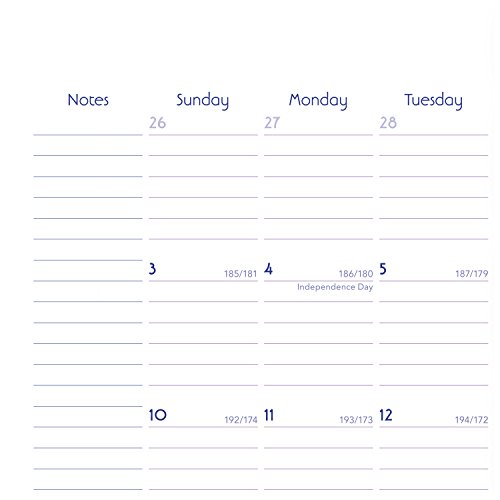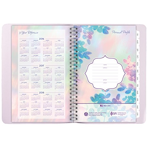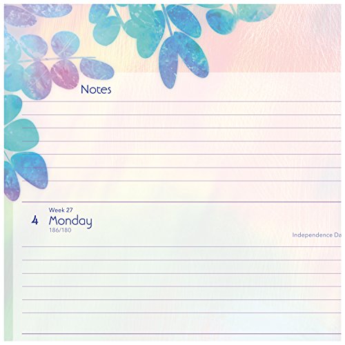 -. Feature : Aura blooms weekly / monthly planner has a pink cover with floral accents on cover and pages. Academic date range runs 12 months from July-June. Ideal for teachers, administrators, parents and other professionals who prefer this schedule. Julian dates. / One week per two page spread is laid out Monday - Sunday with equal space for the weekdays and weekends. Notes section included at the start of each week. / Tabbed, one month per two page spread features unruled daily blocks to mark key dates and events. Notes column shown on the left side of the monthly spread along with past and future month calendar blocks for reference. 4.88 x 8 inch page size.