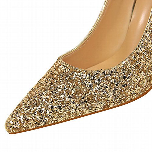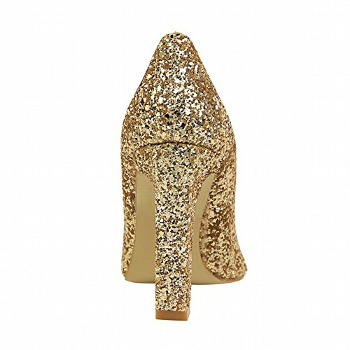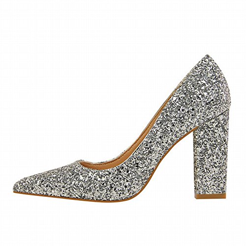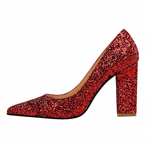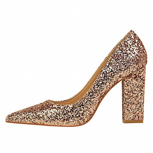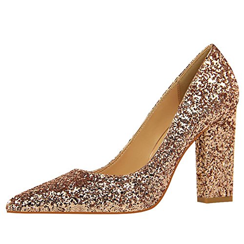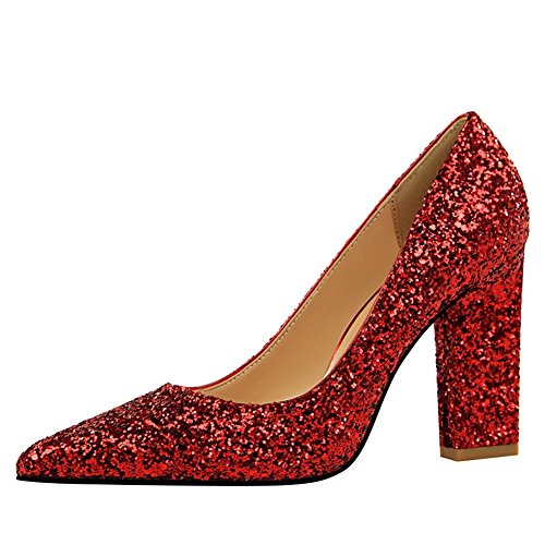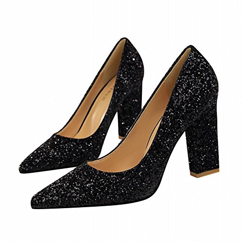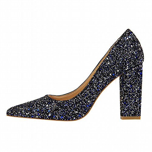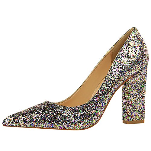 (Charm Foot)/Women's/Pumps/DIRECT FROM USA/Charm Foot Women's Chic Pointed Toe Sequins Chunky High Heel Pumps Shoes