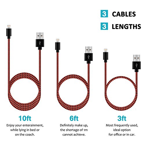 Diverse length: 3ft/6ft/10ft different length for using on sofa, in bed, in car and some other places. The bundles of the Lightning to USB Sync and Charge Cable make your life more convenient.
