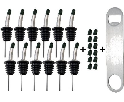 -. Feature : Set of 12 - 18/10 Stainless steel, vented pourer with poly cork / 24 Rubber Bug/Dust Caps - No Fruit Flies! / Fast or Medium flow - fits most liquor, wine and oil bottles / High Quality - professional grade, perfect for home or commercial bars / Bundled with a Bottles-Up Stainless Steel Bottle Opener