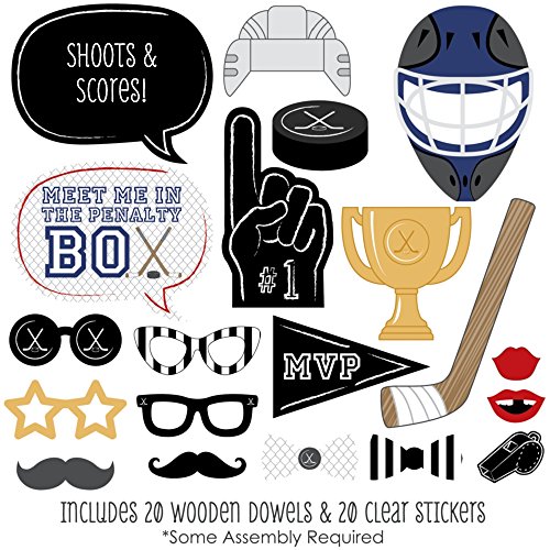 20-Piece Baby Shower or Birthday Party Photo Booth Props Kit INCLUDES 20 Shoots & Scores - Hockey photo booth props, 20 wooden dowel sticks and adhesives for assembly. EASY ASSEMBLY: Simply attach the printed DIY photo booth props to the wooden dowels with included adhesive and reinforcing stickers.