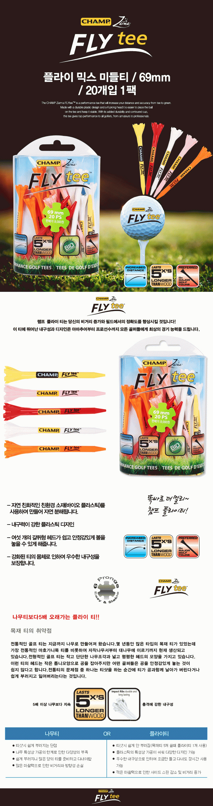 Fly mix mid tee (69mm-20EA) golf tee golf middle