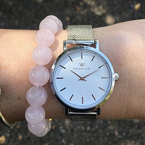The Charlotte womens watch and bracelet set from WRISTOLOGY is the perfect gift for any fashionable lady on your list (even if it's you!) The Charlotte watch features a simple, modern face with just the right amount of feminine details, a slim case in gorgeous silver and an versatile interchangeable silver mesh strap. The set also features an on-trend set of 2 bracelets. The marble beaded bracelet will be you're new favorite while the slim silver knot bracelet adds a bit of class.