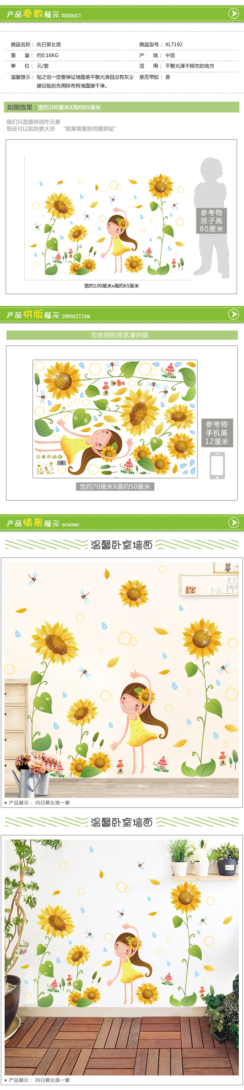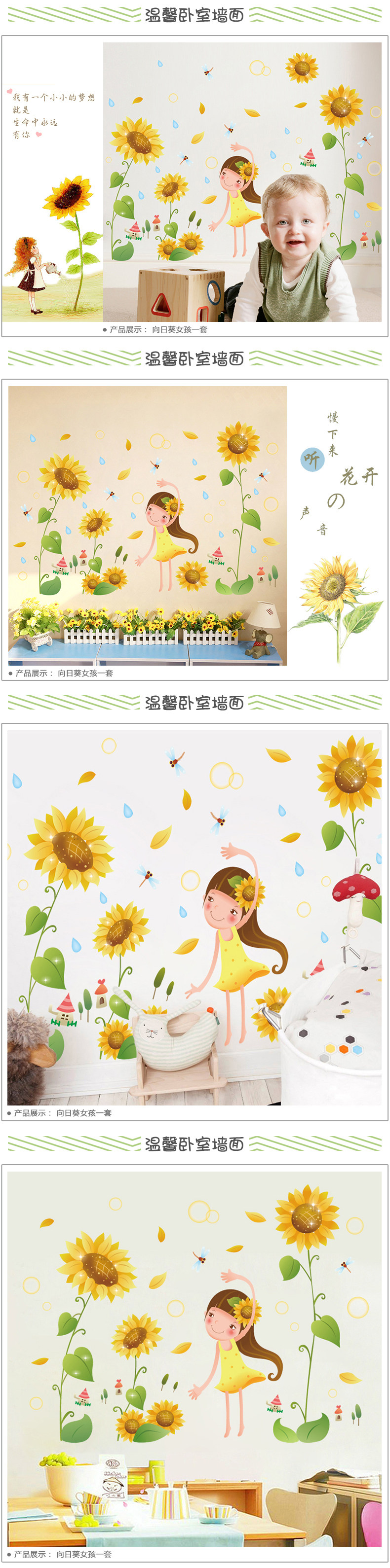 向日葵女孩墙贴卧室温馨浪漫床头贴花墙面墙上装饰品贴画壁画贴纸