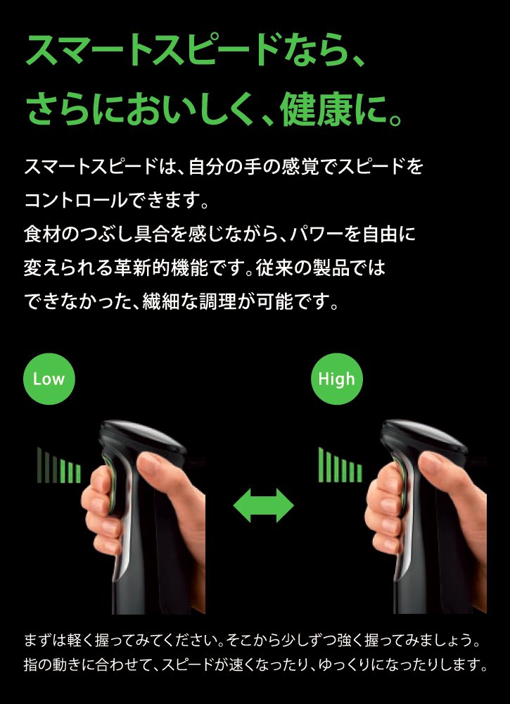 The speed changes according to the grip condition of the large button, and the speed can be freely changed according to the ingredients