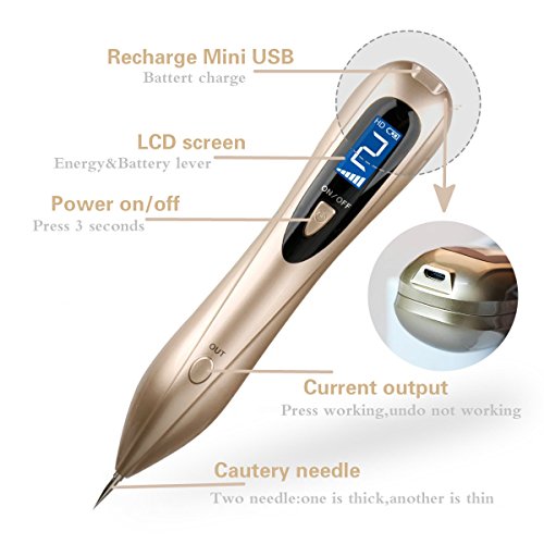 - 2017 Upgrade Version:6 level Strength adjustment for different skins can clean your skin tags step by step.Our mole removal pen is rechargeable with overcharge protection longer service life.(Charge one time it can work more than five hours.)Designed with an LCD display shows the working level and battery level.It also helps you control the device better.
