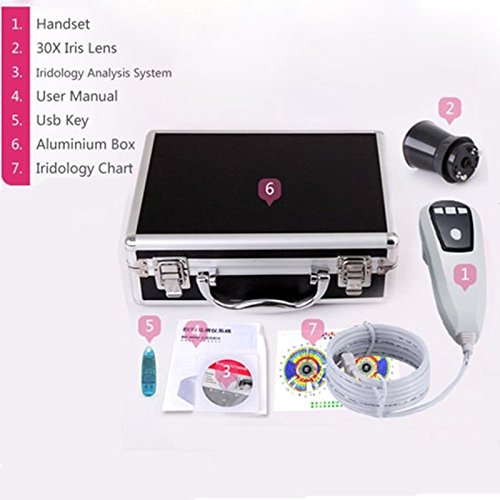 -. Feature : Nice appearance and innovative design * LED illuminator around lens * Imported lens with plated layer * 5.0 Mega pixels high resolution Korea sensor * Special DSP image processor, Optical Image Stabilizer * 4 LED/2 LED lamps control. * Single capture button and digital pause capture. * Adjustable focus to give clear image. * Auto white balance and contrast adjustment, Color Temperature Filter / Dual image compare function * 3D-Negative capture mode * Compatible with iris lens, hair lens and skin lens. * Deliver clear and accurate images. * Easy to operate. * Maximum resolution: 2560x1920 * OS: Windows XP, WIN2000, 2003, Vista, Win7 ,win 8 / 2015 NEW IRIDOLOGY IMAGE PRO ANALYSIS SYSTEM (In English): * Iris analysis system: international technology, unique functions. * Iris analysis system is a medicinal tool that checks the body conditions and prevents diseases from occurring. / We brought in the advanced iris analysis technology from Germany to lead people to discover sources of illness, and care the body health and spirit in anyways. * The instrument can show the body conditions of customers and sest customers the suitable health food, and the plans to care their bodies. / Advanced auto iris analysis technology to provide the best help for beginners to learn. 2)Software easy to use, help you to command. 3)Recommend to use of 1024X768 resolution, it will be the best. 4)Recommend to use Windows XP/2000/Vista/7/8 system.