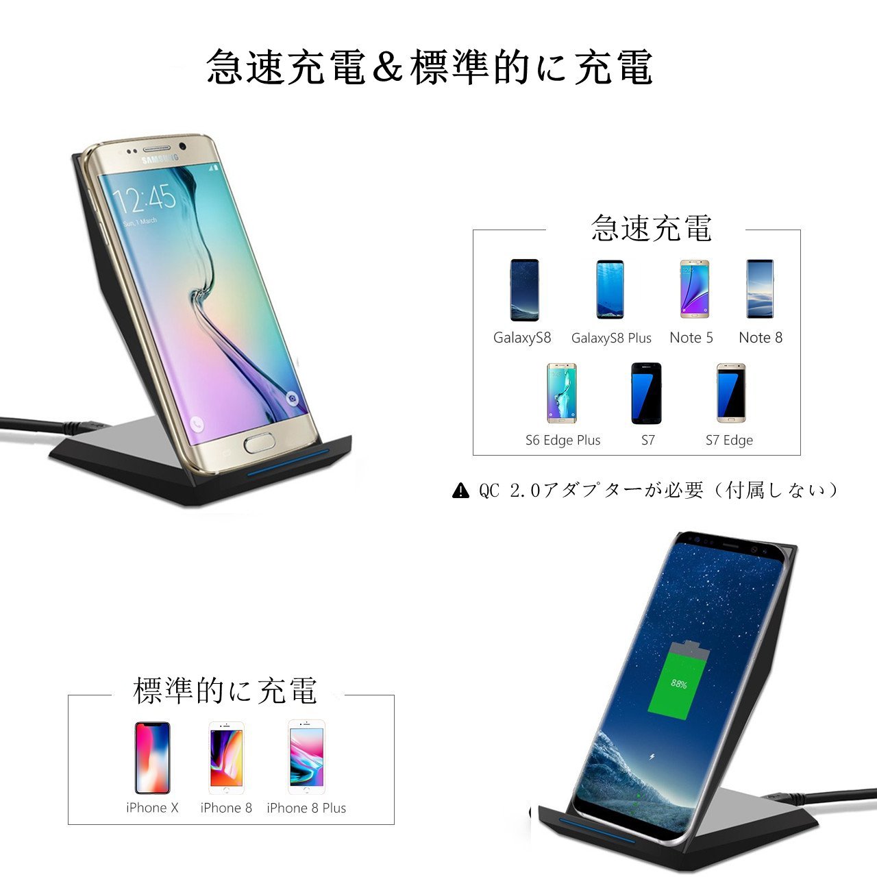 Current rapid charging compatible models: Galaxy Note 8 / S8 / S8 + / S7 / S7 Edge / Note 5 / S6 Edge Plus (Please use power adapter with output of 2A or more when connecting to power supply.