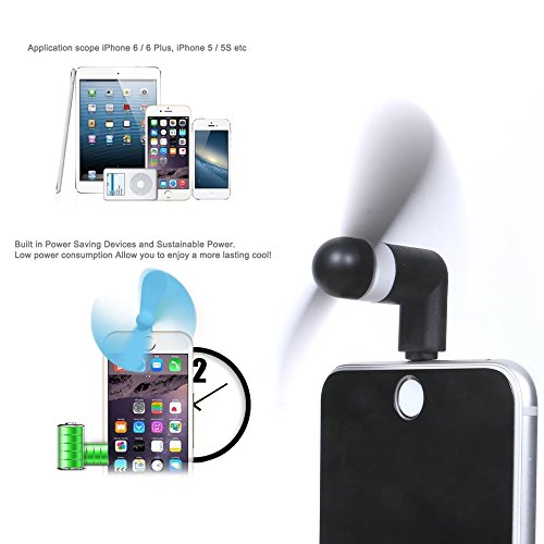 Portable Apple iPhone SE/5/5S/6S/6S Plus Cooling Fan [Blue] - Use Your Phone to Cool Off! (BLACK/ 2 Pack)