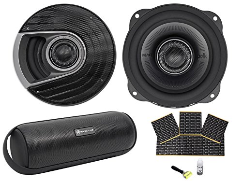 -. Feature : Package Includes: (1) Pair of Polk Audio MM522 5.25" 600 Watt Car Audio Marine/ATV/Motorcycle/Boat Speakers. (1) Rockville RPB25 40 Watt Portable/Outdoor Bluetooth Speaker w/USB+SD+Aux In+FM. (1) Rockville Rockmat RM12 12 Sq Ft Sound Dampening/Deadening Butyl Rubber Car Kit. / "2) Polk Audio MM522 5.25" 600 Watt Car Audio Marine/ATV/Motorcycle/Boat Speakers . Driver Compliment: 5.25"" (133.35 mm). Tweeter Complement: 1"" (25mm). Cutout Dimensions: 4.61"" (117mm). Mounting Height: 0.20"" (5.07mm). Mounting Depth (Top): 2.37"" (60.1mm). Mounting Depth (Bottom): 2.57"" (65.2mm). Peak Power Handling: 300 Watts per speaker. Continuous Power Handling: 100 Watts per speaker. Nominal Impedance: 4 Ohms. " / "Rockville RPB25 40 Watt Portable/Outdoor Bluetooth Speaker w/USB+SD+Aux In+FM . 40 watts peak power. 15 watts continuous RMS. 360-degree sound dispersion technology. True 2 channel stereo sound delivers top-notch sound quality. Battery charges with included USB cable. 3.7V / 2000 mAH battery supports 10 hours of playback at 70 % volume. Charge time: 2.5 Hours. Extremely loud and powerful with industry-leading bass!. " / Bluetooth version. 2.1 with EDR (enhanced data rate). Bluetooth quick-connect technology pairs with your phone in 5 seconds. A2DP audio streaming with 32 foot max Bluetooth range. Automatically remembers and syncs with previously synced devices. Playback Controls - Play, Pause, Skip Forward, Skip Back, Volume Up, Volume Down. Will control next song, pause, play on popular apps like Pandora, Spotify, Youtube, and others. / Rockville Rockmat RM12-B 12 Sq Ft Sound Dampening/Deadening Butyl Rubber Car Kit. Contains 4 sheets of sound damping material - Each sheet is 12" inch x 36" inch (3 sq. ft. per sheet) . Paintable Surface. Recommended for use as a door kit or trunk lid kit. Increases SPL - The use of our Rockmat will not only make your sound more clear and eliminate distortion but it will make your music louder by . Eliminates sound leakage!