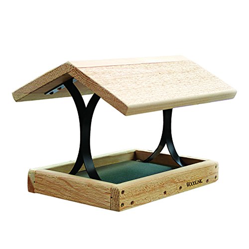 -. Feature : Audubon platform feeder lets birds fly in thru the sides, made in USA / Holds up to 2 lbs. Mixed seed / Product constructed of durable natural inland cedar / Screwed together construction, powder-coated metal screen bottom for drainage