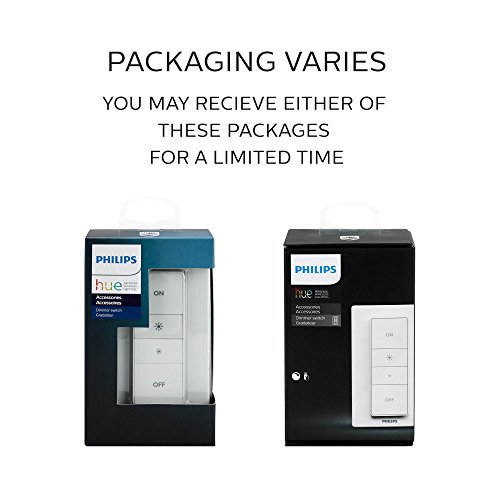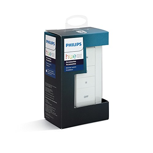 Connect it with your Nest or Samsung SmartThings system. Each kit includes one Hue Dimmer Switch with wall plate and remote, a CR2450 battery, manual, and two-year warranty.