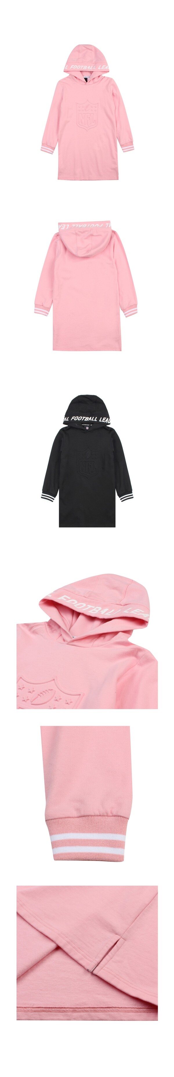 후드 로고 나염과 NFL 엠블럼의 입체적인 엠보가 돋보이는 원피스로 밑단 트임이 있어 활동하기 편한 스타일입니다.