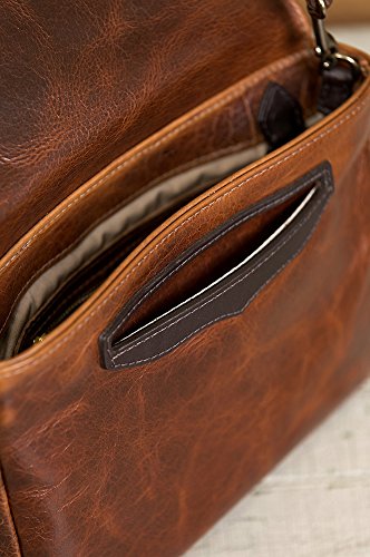 Studio : Overland Sheepskin Co. Publisher : Overland Sheepskin Co. Product Description Rev up your image with our premium leather bag, perfectly sized and styled for daytime or evening. Vegetable tanned Mexican bison leather showcases a rich texture that withstands wear and tear and only improves with age. Open the flap to access a front slip pocket to house your smartphone. And the roomy, fabric-lined interior organizes you with a key clasp, zip wall pocket, and 2 leather slip pockets. In back, a zip and key-lock concealed carry pocket gives you complete peace of mind. The detachable/adjustable strap lets you carry this versatile bag crossbody or by hand. Genuine Bison leather. Horween Latigo leather trim. Strap drop 16.5"-21.5". Dimensions: 11"W x 8"H x 2"D. Weight: 2.09 lbs. Made in the USA. 0
