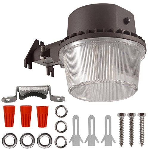- EASY TO INSTALL BARN LIGHTS AT ANYWHERE: The LED Barn Lights Include bracket for Wall or Pole Mounting, It has multiple installation methods by wall or post mounted and compatible with mounting arms. Easily mounts to a wooden post or pole using 2” lag screws, which are included. **Easy and Quick mounting optional *1. Direct Wall Mount *2. Workable with Arm mounting for Poles Photocell automatically turns the light on at dusk and off at dawn. Besides, the light is easy and fast installation.