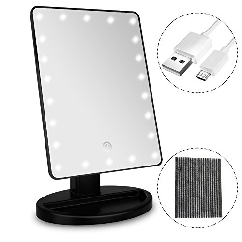 Lighted Makeup Mirror Touch Sensor Led light Diming Detachable Cosmetic Mirror with Organizer Base Battery/USB Chargeable