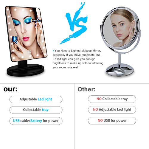 High Definition:Surrounded by 21 cool LED lights allow you use the light even at night.perfect for drawing eye liner and removing dity thing on face