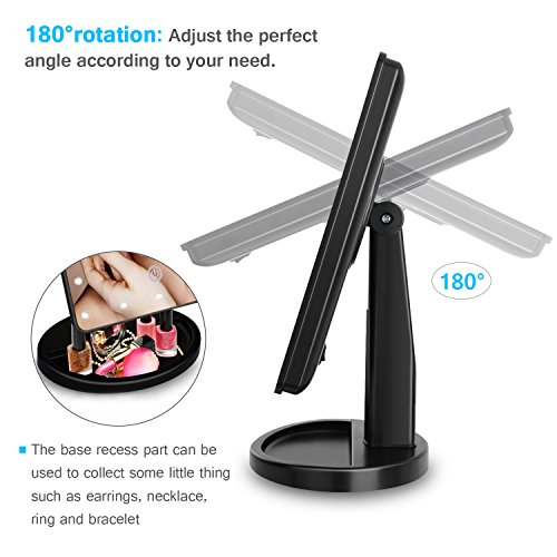 Find a perfect viewing angle with 180° swivel rotation function;An tray on the bottom can collect your small items,such as perfume, lipstick and some small jewelry