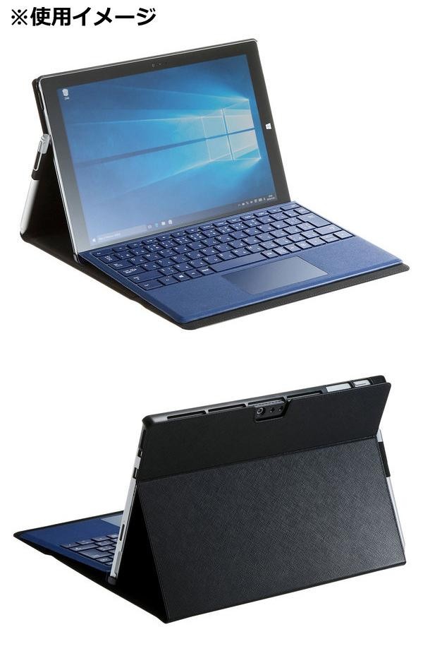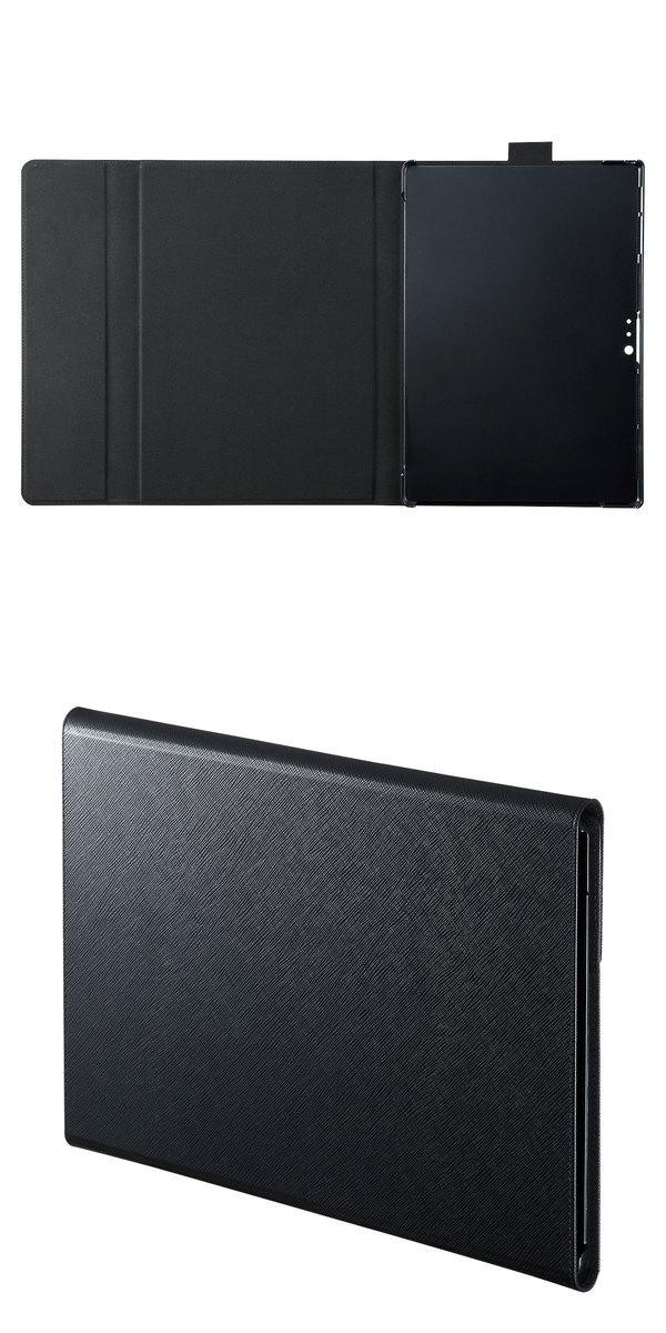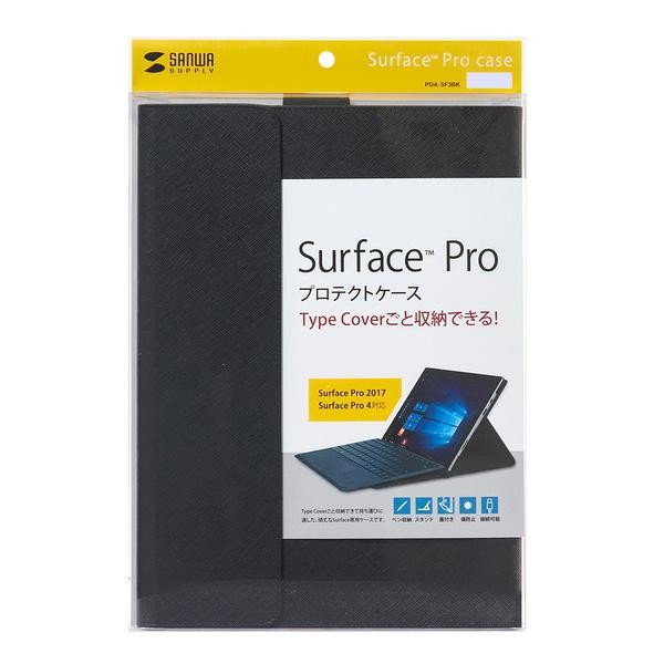 Microsoft Surface Pro 2017/Pro 4用の保護ケースです。純正のキーボードType coverを装着したまま、使用、持ち運びが可能です。横置きスタンドとしても使用できます。マグネットで着脱できるフラップ付きで、不意に開くことを防止します。 |